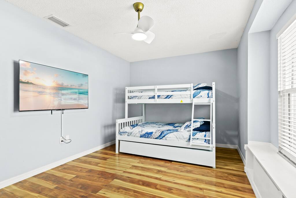 Located just minutes from Bradentonβs sandy shores, this modern retreat is ideal for family vacations, group gatherings, or a relaxing couplesβ escape. Why Youβll Love It: β¦ Cozy, modern Bradenton, FL vacation rental β minutes from Anna Maria Island, Bradenton Riverwalk, IMG Academy, and some of the best dining spots in Bradenton. β¦ Stream or Zoom with fast, private Wi-Fi β¦ Enjoy a stocked outdoor space with a heated pool, putting green, cornhole, and outdoor lighting for evening fun. β¦ Family-friendly β board games, ample outdoor seating. β Living Room β β¦ Roku TV (log in to your favorite apps) β¦ Open flow to the kitchen, bedrooms, and outdoor spaces β Bedrooms (Sleeps 8) β β¦ Bedroom 1: King bed β’ Roku smart TV β¦ Bedroom 2: Queen bed β’ Roku smart TV β¦ Bedroom 3: Full and twin bunk beds with twin trundle underneath β’ Roku smart TV β Game Room (In Garage) β β¦ Pac-Man arcade game β¦ Dual shot Basketball β¦ Dart board β¦ Foosball table β¦ Beach equipment (Chairs, cart, cooler, toys) β Fully Stocked Kitchen β β¦ Modern appliances β¦ Cookware, dishes & utensils β¦ Keurig (K-Cup and Grounds) β¦ Unique bicycle counter β¦ Ready for family breakfasts or dinners β Outdoor β β¦ Driveway parking for 4 vehicles β¦ Covered patio β¦ Heated Pool (December - March) β¦ Putting green β¦ Roku smart TV β¦ Cornhole β¦ Pool Basketball hoop β¦ Propane grill β¦ Outdoor string lights β¦ Ample outdoor seating and furniture for dining and relaxing β Work, Stream & Stay Connected β β¦ High-speed Wi-Fi (500 Mbps) ideal for streaming, Zoom meetings, and staying connected on the go. β¦ Dedicated workspace in the King bedroom β Additional Amenities β β¦ Easy access to washer/dryer in Kitchen area β¦ Pack n' Play (We do not provide the mattress or sheets) β¦ High Chair β Perfect For β β¦ Family adventures, couplesβ getaways, and group trips focused on all Bradenton has to offer, including relaxing at the Beach, outdoor & sightseeing activities, the Bradenton Riverwalk, and unique food, wine & brewing options. Whether youβre relaxing on the Gulf beaches, perfecting your short game on your private putting green, lounging by the heated pool, or exploring Bradentonβs vibrant coastal charm, our home is your spacious, family-friendly retreat β the perfect home base for groups, families, or couples. Add our property to your wishlist by clicking the heart in the upper right hand corner. Send us a message to learn more about exciting activities in close proximity to our property! Please note, landscaping and pool cleaning services occur on Wednesdays. Please note, we can accommodate early check-ins if the property is ready in time, but we cannot guarantee an early check-in. We do not allow late check-outs. All guests must vacate the property by 10 AM EST to allow our cleaning crew to prepare the property for the next guests.
