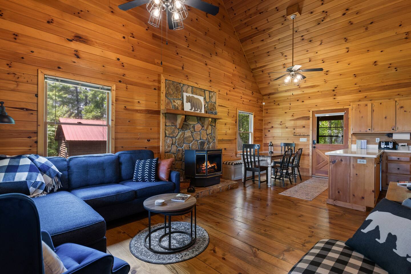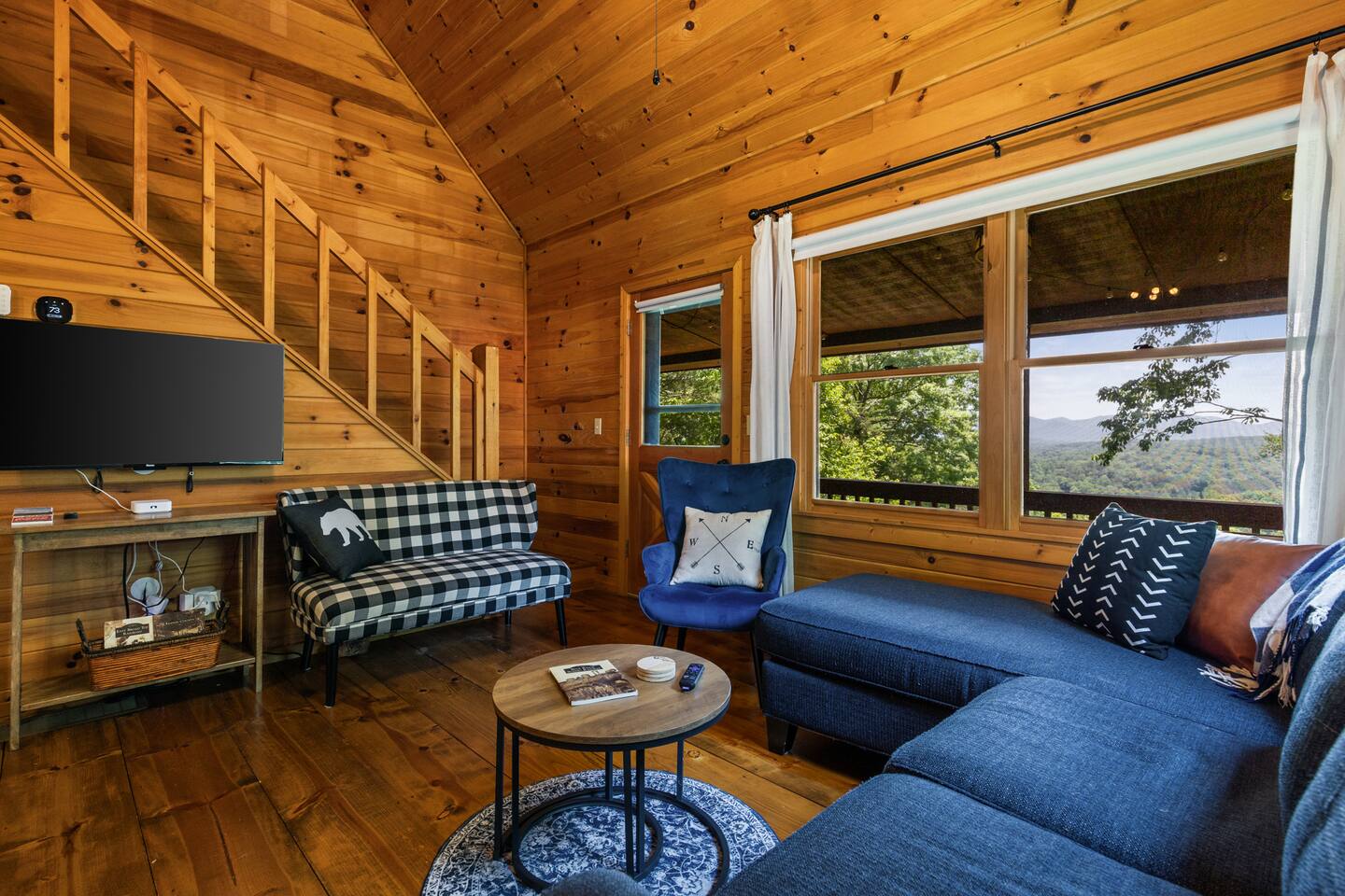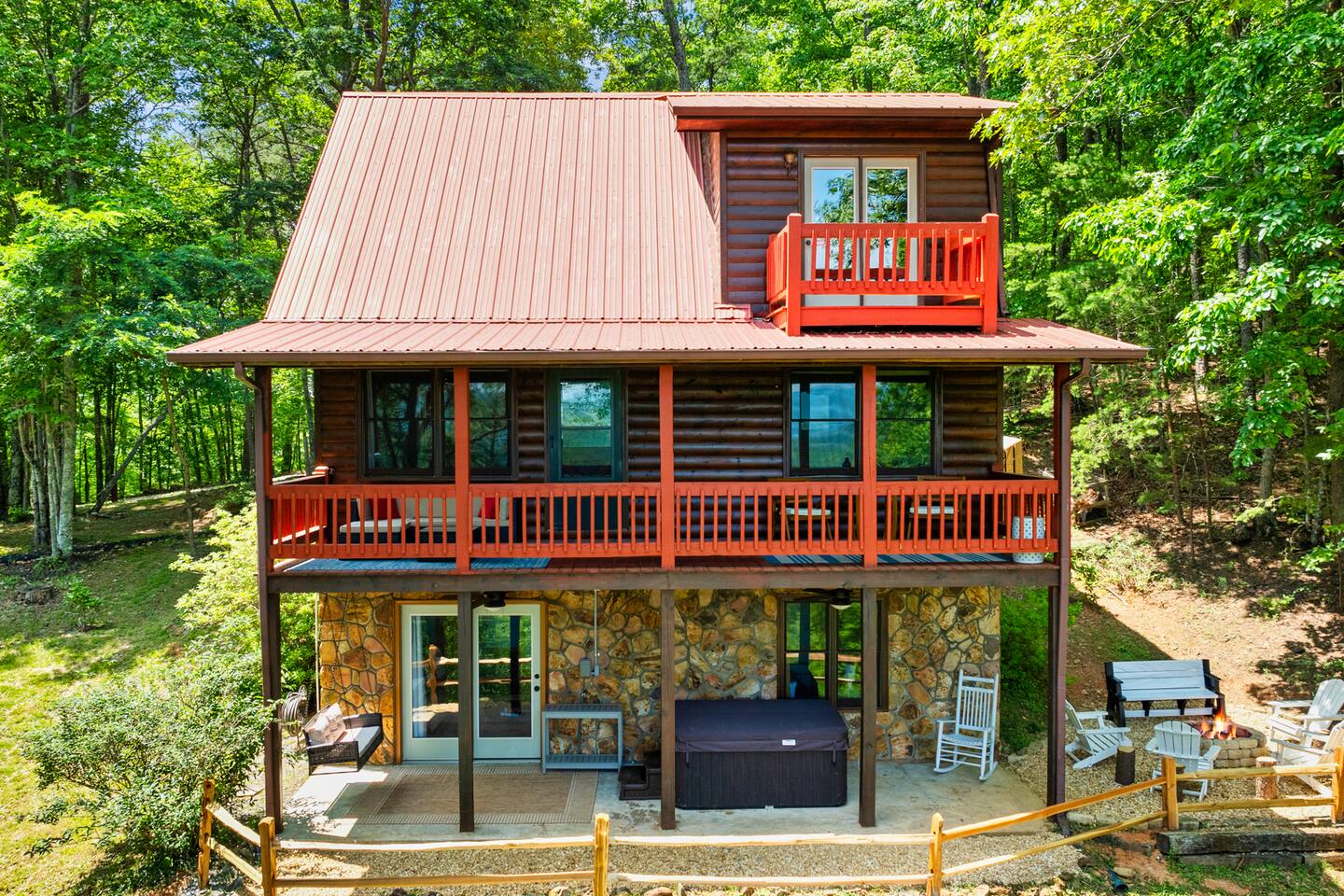 "Whether in the hot tub or sitting on the swing or comfy furniture on the deck the trees frame the mountains like a work of art." - Shannon Why Youβll Love It: β¦ Cozy, central Blue Ridge, GA vacation rental β minutes from the Blue Ridge Scenic Railway, Main Street shops, restaurants, Blue Ridge Lake, and the Aska Adventure Area. β¦ Stream or Zoom with fast, private Wi-Fi β¦ Watch beautiful sunrises over the Blue Ridge Mountains. β¦ Family-friendly β board games, ample outdoor seating, and a classic fire pit to build memories. Enjoy our βcampingβ nook on the ground floor. β Living Rooms (Main floor and Ground floor) β β¦ 2 Queen sleeper sofas β¦ 2 Roku TVs (log in to your favorite apps) β¦ Open flow to the kitchen, bedrooms, and outdoor spaces β Bedrooms (Sleeps 10) β β¦ Bedroom 1: King bed β’ Roku smart TV β’ Private balcony β¦ Bedroom 2: Queen bed, twin trundle β’ Roku smart TV β¦ Bedroom 3: Two twin beds β’ Quick access to arcade room β Fully Stocked Kitchen β β¦ Modern appliances β¦ Cookware, dishes & utensils β¦ Keurig (K-Cup Version) β¦ Ready for family breakfasts or dinners β Outdoor β β¦ Paved road access β¦ Gravel parking for 4 vehicles β¦ 3 decks/patios β¦ Hot tub β¦ Fire pit (We do not provide firewood. We do provide starter) β¦ Ample outdoor seating and furniture β¦ Charcoal Park Style Grill (We provide grilling utensils, a cleaning brush, and an ash bucket. We do not provide charcoal, lighter fluid, or any other items for the grill. The grill is not part of our cleaner's cleaning routine and should be scraped clean by guests prior to use.) β Work, Stream & Stay Connected β β¦ High-speed Wi-Fi (500 Mbps) ideal for streaming, Zoom meetings, and staying connected on the go. β¦ Dedicated workspace β Additional Amenities β β¦ Arcade room with Roku TV, Mortal Kombat, and NBA Jam arcade games β¦ Clawfoot tub β¦ Easy access to washer/dryer on main floor β¦ 2 Pack n' Plays (We do not provide the mattresses or sheets) β¦ High Chair β Perfect For β β¦ Family adventures, couplesβ getaways, and group trips focused on all Blue Ridge has to offer, including hiking, outdoor & Lake activities, the Railway, unique food, wine & brewing options, and a whole lot of southern charm. "The cabin and location could not have been better" - Keith Whether youβre hiking the Aska trails, riding the Blue Ridge Scenic Railway, exploring Lake Blue Ridge, or simply soaking in the hot tub with mountain views, our property is your spacious, family-friendly cabin and the perfect home base for groups, families, or couples in Blue Ridge, GA. Add our property to your wishlist by clicking the heart in the upper right hand corner. Send us a message to learn more about exciting activities in close proximity to our property! Please note, we can accommodate early check-ins if the cabin is ready in time, but we cannot guarantee an early check-in. We do not allow late check-outs. All guests must vacate the cabin by 10 AM EST to allow our cleaning crew to prepare the cabin for the next guests.