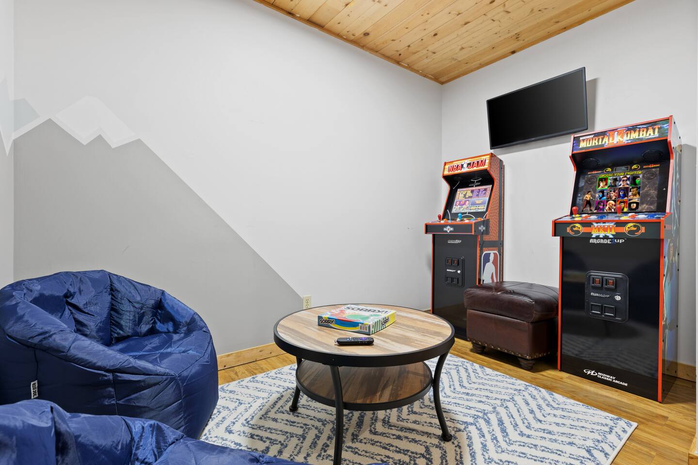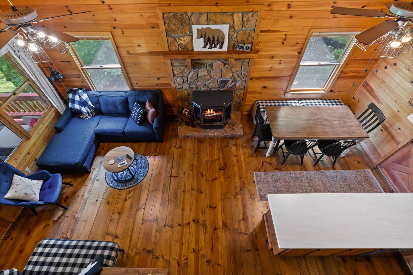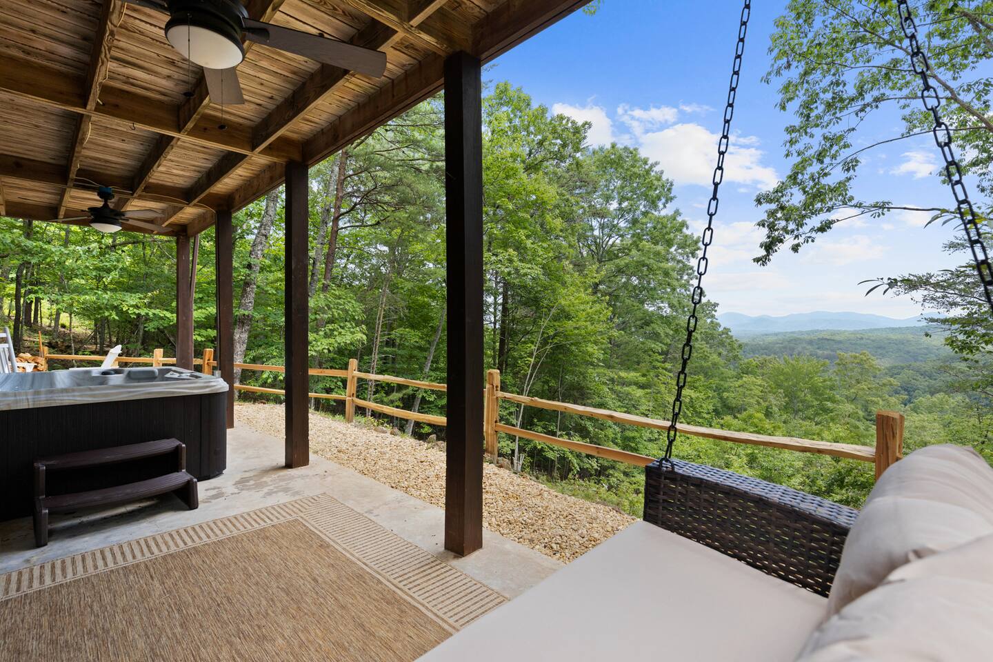 "Whether in the hot tub or sitting on the swing or comfy furniture on the deck the trees frame the mountains like a work of art." - Shannon Why Youβll Love It: β¦ Cozy, central Blue Ridge, GA vacation rental β minutes from the Blue Ridge Scenic Railway, Main Street shops, restaurants, Blue Ridge Lake, and the Aska Adventure Area. β¦ Stream or Zoom with fast, private Wi-Fi β¦ Watch beautiful sunrises over the Blue Ridge Mountains. β¦ Family-friendly β board games, ample outdoor seating, and a classic fire pit to build memories. Enjoy our βcampingβ nook on the ground floor. β Living Rooms (Main floor and Ground floor) β β¦ 2 Queen sleeper sofas β¦ 2 Roku TVs (log in to your favorite apps) β¦ Open flow to the kitchen, bedrooms, and outdoor spaces β Bedrooms (Sleeps 10) β β¦ Bedroom 1: King bed β’ Roku smart TV β’ Private balcony β¦ Bedroom 2: Queen bed, twin trundle β’ Roku smart TV β¦ Bedroom 3: Two twin beds β’ Quick access to arcade room β Fully Stocked Kitchen β β¦ Modern appliances β¦ Cookware, dishes & utensils β¦ Keurig (K-Cup Version) β¦ Ready for family breakfasts or dinners β Outdoor β β¦ Paved road access β¦ Gravel parking for 4 vehicles β¦ 3 decks/patios β¦ Hot tub β¦ Fire pit (We do not provide firewood. We do provide starter) β¦ Ample outdoor seating and furniture β¦ Charcoal Park Style Grill (We provide grilling utensils, a cleaning brush, and an ash bucket. We do not provide charcoal, lighter fluid, or any other items for the grill. The grill is not part of our cleaner's cleaning routine and should be scraped clean by guests prior to use.) β Work, Stream & Stay Connected β β¦ High-speed Wi-Fi (500 Mbps) ideal for streaming, Zoom meetings, and staying connected on the go. β¦ Dedicated workspace β Additional Amenities β β¦ Arcade room with Roku TV, Mortal Kombat, and NBA Jam arcade games β¦ Clawfoot tub β¦ Easy access to washer/dryer on main floor β¦ 2 Pack n' Plays (We do not provide the mattresses or sheets) β¦ High Chair β Perfect For β β¦ Family adventures, couplesβ getaways, and group trips focused on all Blue Ridge has to offer, including hiking, outdoor & Lake activities, the Railway, unique food, wine & brewing options, and a whole lot of southern charm. "The cabin and location could not have been better" - Keith Whether youβre hiking the Aska trails, riding the Blue Ridge Scenic Railway, exploring Lake Blue Ridge, or simply soaking in the hot tub with mountain views, our property is your spacious, family-friendly cabin and the perfect home base for groups, families, or couples in Blue Ridge, GA. Add our property to your wishlist by clicking the heart in the upper right hand corner. Send us a message to learn more about exciting activities in close proximity to our property! Please note, we can accommodate early check-ins if the cabin is ready in time, but we cannot guarantee an early check-in. We do not allow late check-outs. All guests must vacate the cabin by 10 AM EST to allow our cleaning crew to prepare the cabin for the next guests.