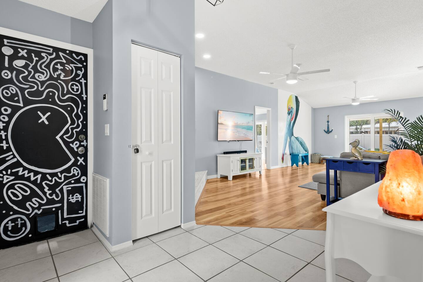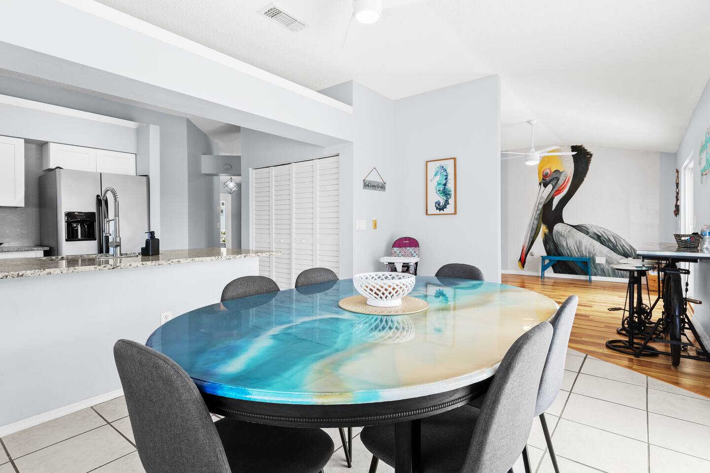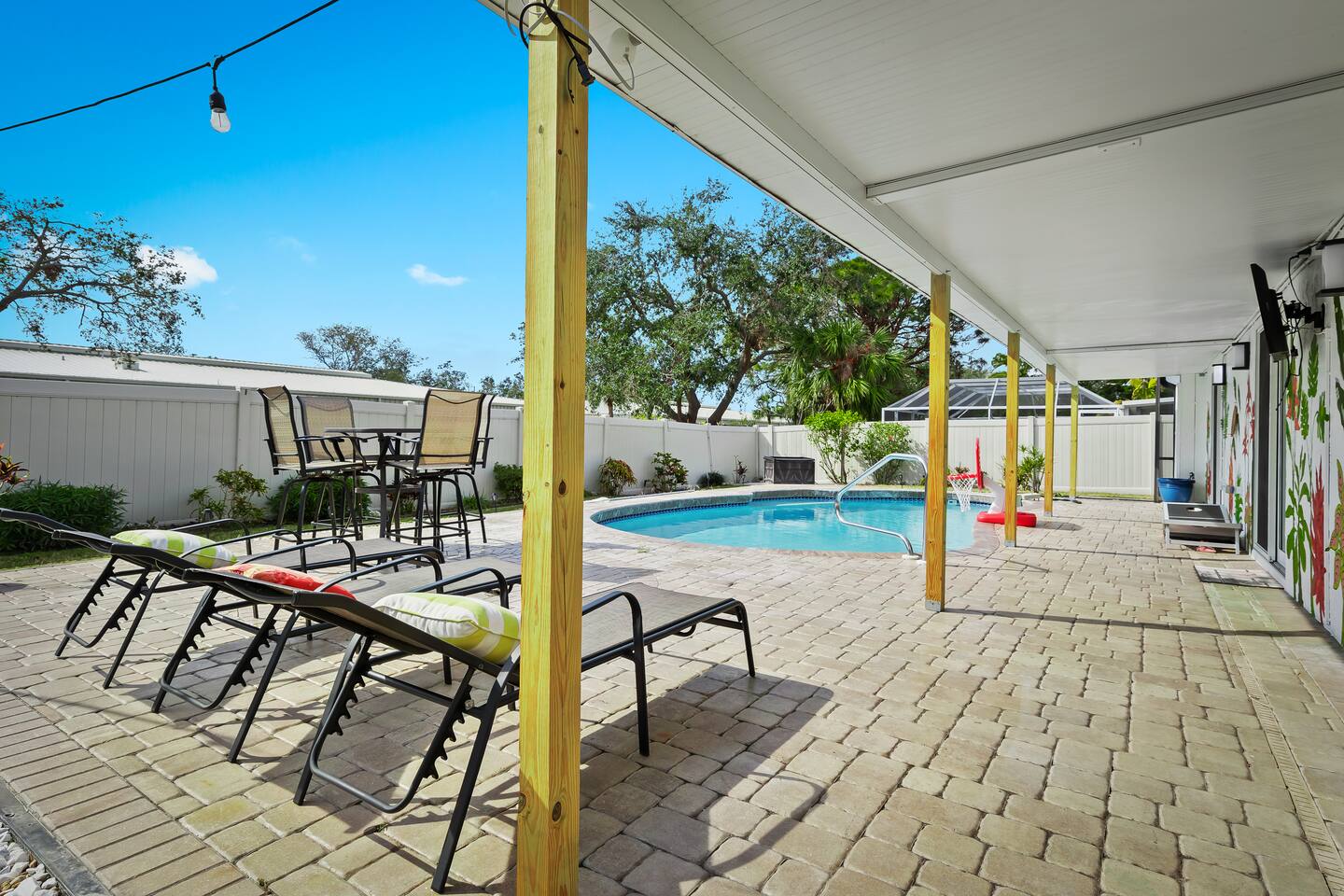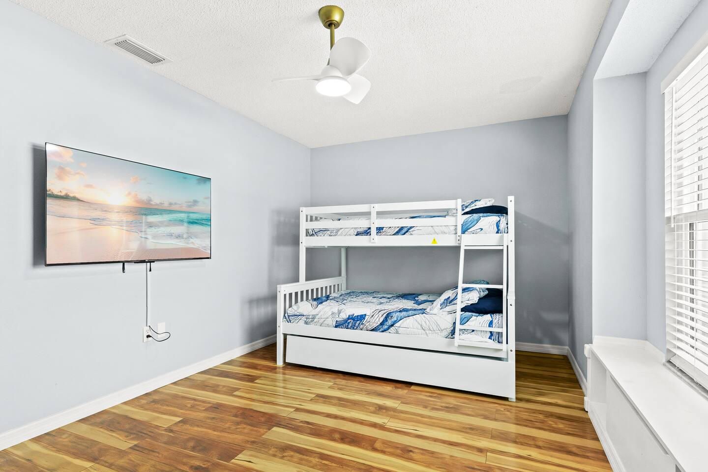 Located just minutes from Bradentonβs sandy shores, this modern retreat is ideal for family vacations, group gatherings, or a relaxing couplesβ escape. Why Youβll Love It: β¦ Cozy, modern Bradenton, FL vacation rental β minutes from Anna Maria Island, Bradenton Riverwalk, IMG Academy, and some of the best dining spots in Bradenton. β¦ Stream or Zoom with fast, private Wi-Fi β¦ Enjoy a stocked outdoor space with a heated pool, putting green, cornhole, and outdoor lighting for evening fun. β¦ Family-friendly β board games, ample outdoor seating. β Living Room β β¦ Roku TV (log in to your favorite apps) β¦ Open flow to the kitchen, bedrooms, and outdoor spaces β Bedrooms (Sleeps 8) β β¦ Bedroom 1: King bed β’ Roku smart TV β¦ Bedroom 2: Queen bed β’ Roku smart TV β¦ Bedroom 3: Full and twin bunk beds with twin trundle underneath β’ Roku smart TV β Game Room (In Garage) β β¦ Pac-Man arcade game β¦ Dual shot Basketball β¦ Dart board β¦ Foosball table β¦ Beach equipment (Chairs, cart, cooler, toys) β Fully Stocked Kitchen β β¦ Modern appliances β¦ Cookware, dishes & utensils β¦ Keurig (K-Cup and Grounds) β¦ Unique bicycle counter β¦ Ready for family breakfasts or dinners β Outdoor β β¦ Driveway parking for 4 vehicles β¦ Covered patio β¦ Heated Pool (December - March) β¦ Putting green β¦ Roku smart TV β¦ Cornhole β¦ Pool Basketball hoop β¦ Propane grill β¦ Outdoor string lights β¦ Ample outdoor seating and furniture for dining and relaxing β Work, Stream & Stay Connected β β¦ High-speed Wi-Fi (500 Mbps) ideal for streaming, Zoom meetings, and staying connected on the go. β¦ Dedicated workspace in the King bedroom β Additional Amenities β β¦ Easy access to washer/dryer in Kitchen area β¦ Pack n' Play (We do not provide the mattress or sheets) β¦ High Chair β Perfect For β β¦ Family adventures, couplesβ getaways, and group trips focused on all Bradenton has to offer, including relaxing at the Beach, outdoor & sightseeing activities, the Bradenton Riverwalk, and unique food, wine & brewing options. Whether youβre relaxing on the Gulf beaches, perfecting your short game on your private putting green, lounging by the heated pool, or exploring Bradentonβs vibrant coastal charm, our home is your spacious, family-friendly retreat β the perfect home base for groups, families, or couples. Add our property to your wishlist by clicking the heart in the upper right hand corner. Send us a message to learn more about exciting activities in close proximity to our property! Please note, landscaping and pool cleaning services occur on Wednesdays. Please note, we can accommodate early check-ins if the property is ready in time, but we cannot guarantee an early check-in. We do not allow late check-outs. All guests must vacate the property by 10 AM EST to allow our cleaning crew to prepare the property for the next guests.